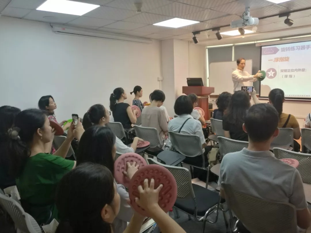 现场气氛浓烈,帅巴赫旋转练习盘吸引了全体老师的高度关注,在课间休息时排起了购买长队。
