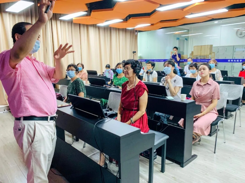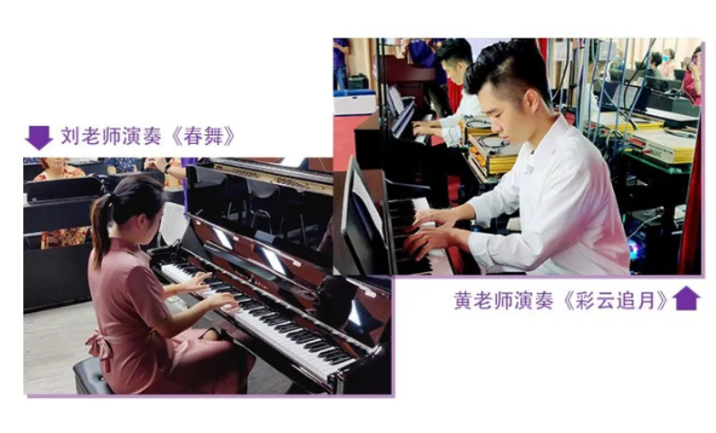 当天,黄老师与刘老师分别演奏《彩云追月》、《春舞》,引领大家走进钢琴演奏的学习氛围,拉开了机能训练的帷幕。