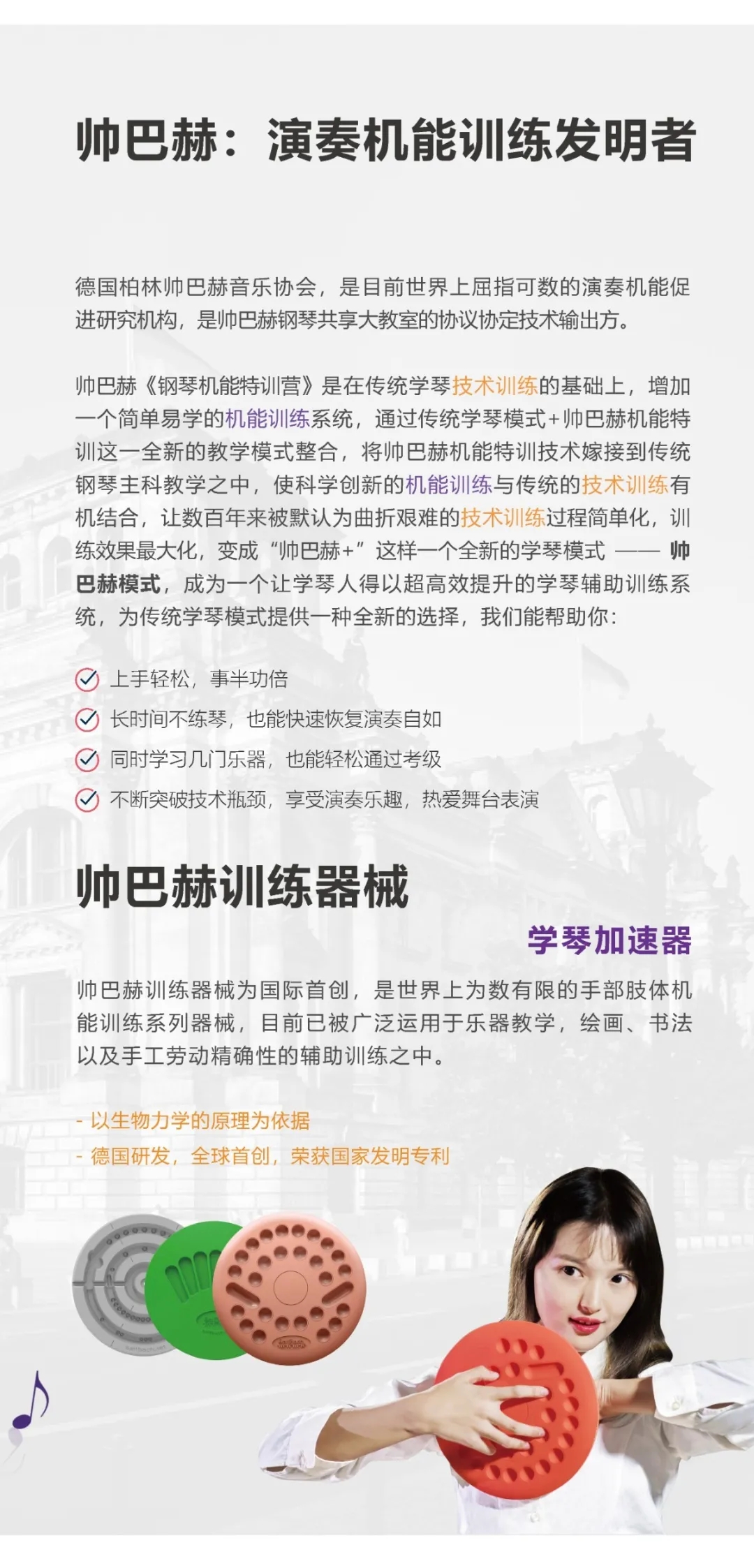 帅巴赫经历了长达20多年的研究,进行过无数的实验,终于从运动人体科学的原理中,找到提升学琴效能的超高效方法:帅巴赫模式。