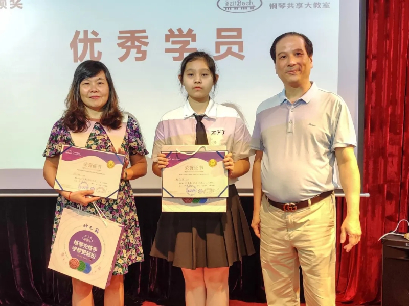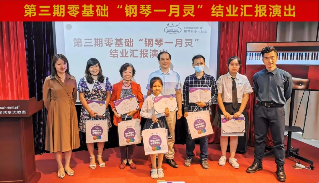 帅巴赫还颁发了“优秀学员”证书,剩下未获得名次的学员也不用气馁,表示要再接再厉,对此,帅巴赫也一并送出了零基础“钢琴一月灵”的完整教材,鼓励大家继续好好学习。